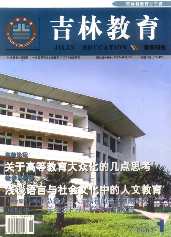- 主管单位:吉林教育厅 主办单位:吉林教育杂志社